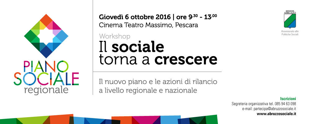 ​In occasione del workshop "Il Sociale torna a crescere - Il nuovo piano e le azioni di rilancio a livello regionale e nazionale", organizzato dall'Assessorato alle Politiche Sociali della Regione Abruzzo, il Ministro del Lavoro e delle Politiche Sociali, Giuliano Poletti, prenderà parte al dibattito sul Piano Sociale Regionale.
