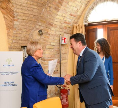 The Minister of Labour and Social Policies, Marina Calderone, held two bilateral meetings on the margins of the G7 Labour and Employment Ministerial Meeting with the German Federal Minister for Labour and Social Affairs, Hubertus Heil, and the British Minister of State for Labour and Pensions, Alison McGovern. With Minister Heil, the inter-connectedness of the Italian and German economies was highlighted and the respective dynamics of the labour market were explored in depth. Agreement on the need for an Action Plan for the development and the use of Artificial Intelligence was confirmed. Great attention was also paid to the issue of digital and demographic transitions, closely linked to skills, against the backdrop of the Joint Declaration of Intent on professional training. With Deputy Minister McGovern, the mutual interest in continuing an intense collaboration, underlining the mutual interest between the two countries, in particular on the issues of artificial intelligence and it's impact on the world of work and on policies that specifically support young people in work.