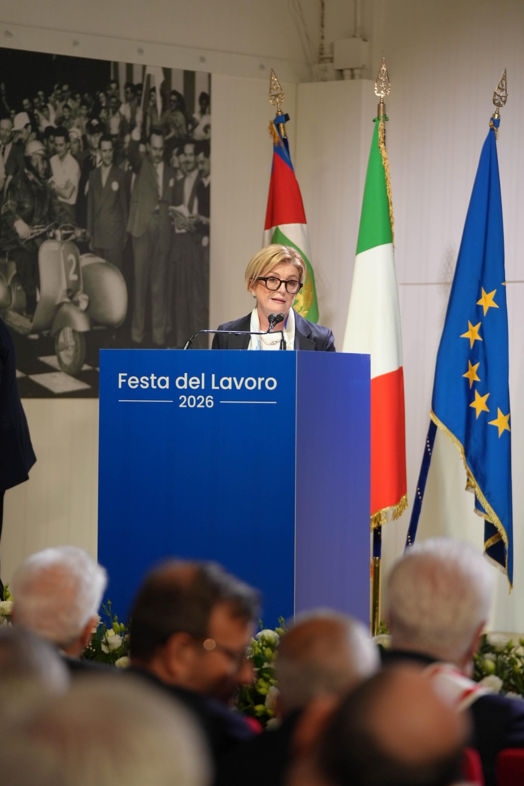 Il Ministro del Lavoro e delle Politiche Sociali Marina Calderone ha partecipato oggi alle celebrazioni del Primo Maggio insieme al Presidente della Repubblica Sergio Mattarella, presso gli stabilimenti Piaggio di Pontedera, luogo simbolo della storia industriale italiana.