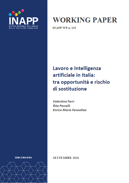 Settembre 2024 - Fonte: Ferri V., Porcelli R., Fenoaltea E.M. (2024), "Lavoro e Intelligenza artificiale in Italia: tra opportunità e rischio di sostituzione" Questo working paper INAPP analizza l'impatto dell'Intelligenza Artificiale (IA) sul mercato del lavoro italiano. Gli autori stimano l'esposizione all'IA di diverse professioni e settori, considerando sia il rischio di sostituzione sia le opportunità di complementarità. Lo studio identifica le professioni più a rischio e quelle che potrebbero beneficiare dell'IA, fornendo indicazioni per politiche di adattamento e formazione | |