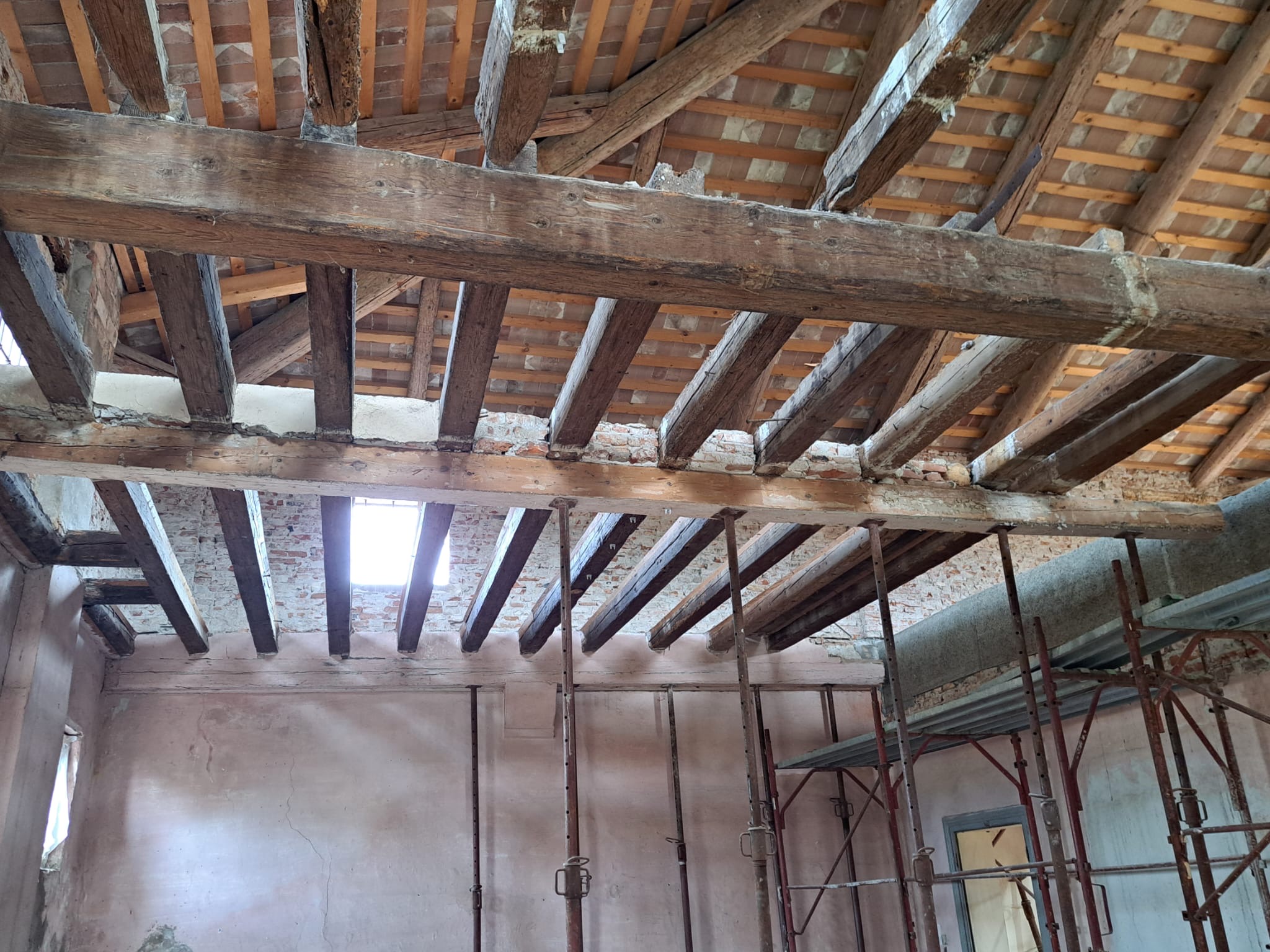 Il fabbricato, di valore storico e monumentale (con vincolo dalla Soprintendenza), si sviluppa su due-tre piani fuori terra per una superficie catastale complessiva di mq 699 di vani utili e mq 774 di vani accessori e portici; attualmente viene utilizzato solo il piano terra, recuperato e reso agibile grazie a vari interventi realizzati nel corso degli anni: tra il 2013 e il 2020, PomoDoro APS ha infatti eseguito al piano terra e sulle coperture una serie di lavori di restauro, riqualificazione e consolidamento per un importo di oltre 400.000 euro, in collaborazione con Fondazione Cariverona e altri enti e privati.